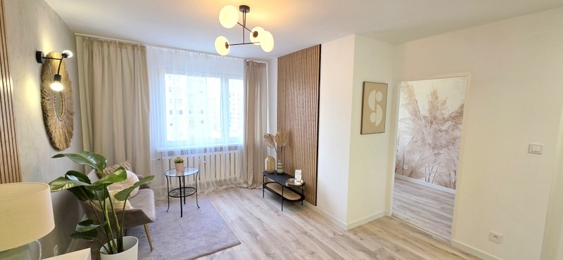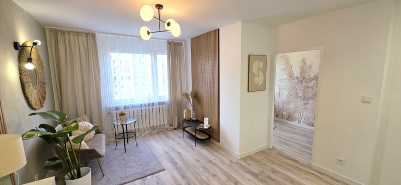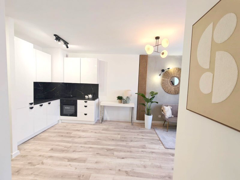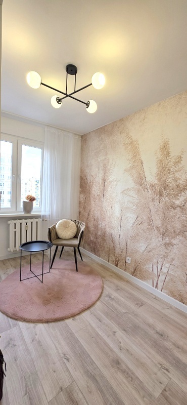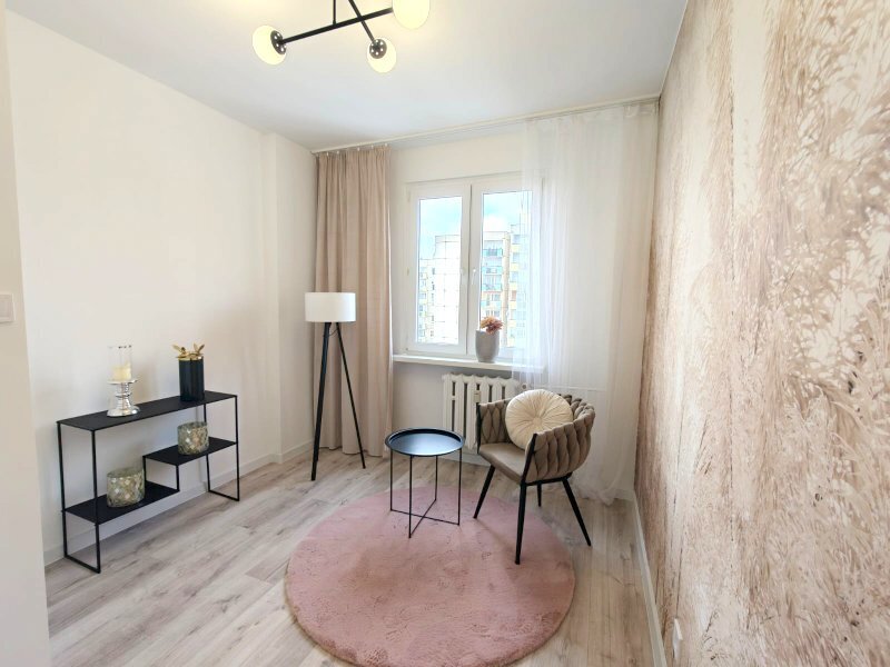 Mieszkanie przeszło generalny remont – zostały wymienione wszystkie instalacje elektryczne oraz wodno-kanalizacyjne. Wnętrze zostało zaprojektowane w nowoczesnym, ponadczasowym stylu, z dużą dbałością o estetykę i funkcjonalność.