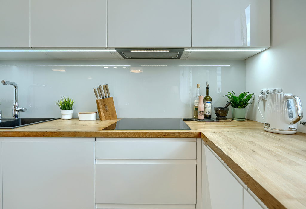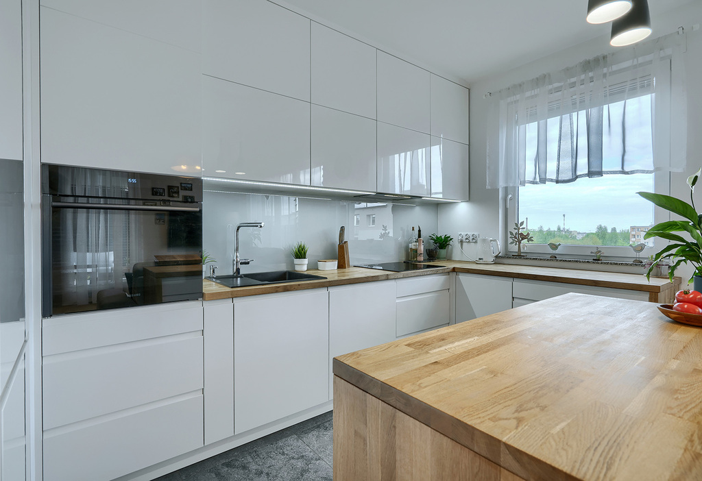 • Wysoki standard wykończenia: panele podłogowe o podwyższonej trwałości, granitowe parapety, meble kuchenne na wymiar z wyspą (sprzęt AGD: piekarnik, płyta indukcyjna, zmywarka, lodówka, okap)
