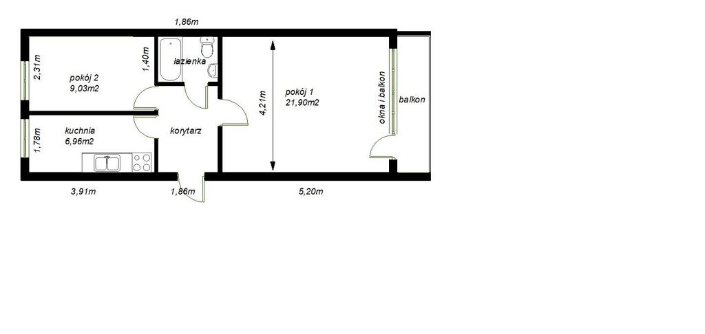 - dwa ustawne pokoje,