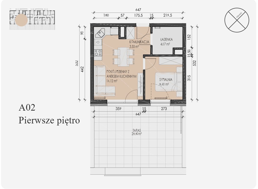 Ogromnym atutem apartamentu jest duży taras o powierzchni 28,08 m2