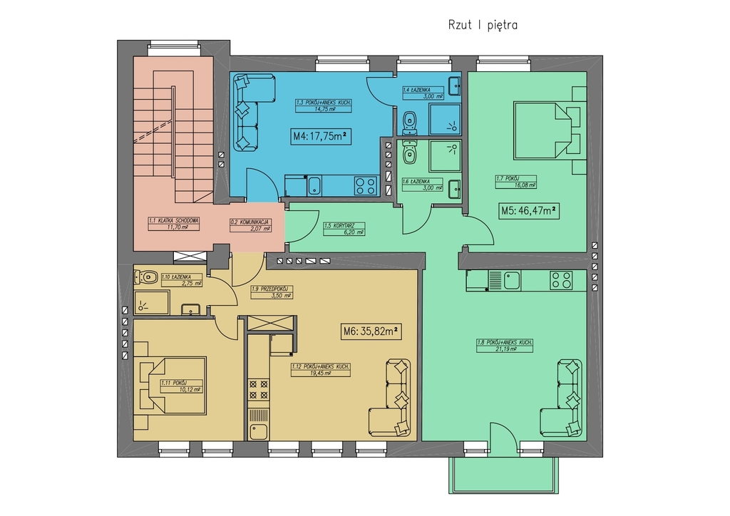- indywidualne liczniki na gaz, prąd i wodę dla każdego mieszkania,