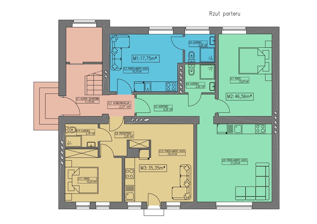 Na niski koszt utrzymania mieszkania będzie wpływał fakt zarządzania budynkiem przez Wspólnotę mieszkaniową.
