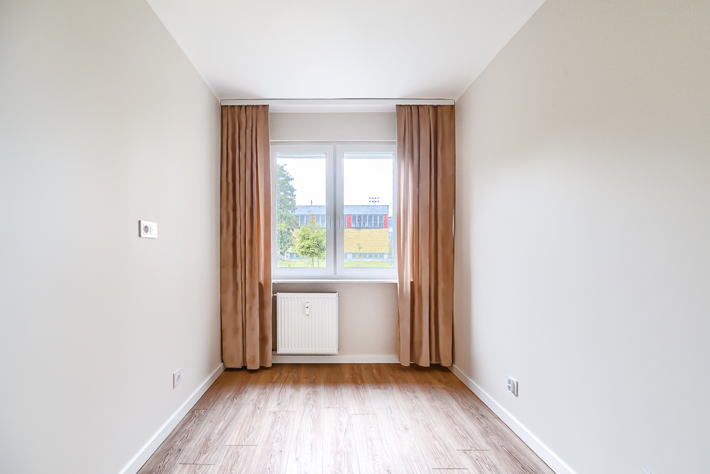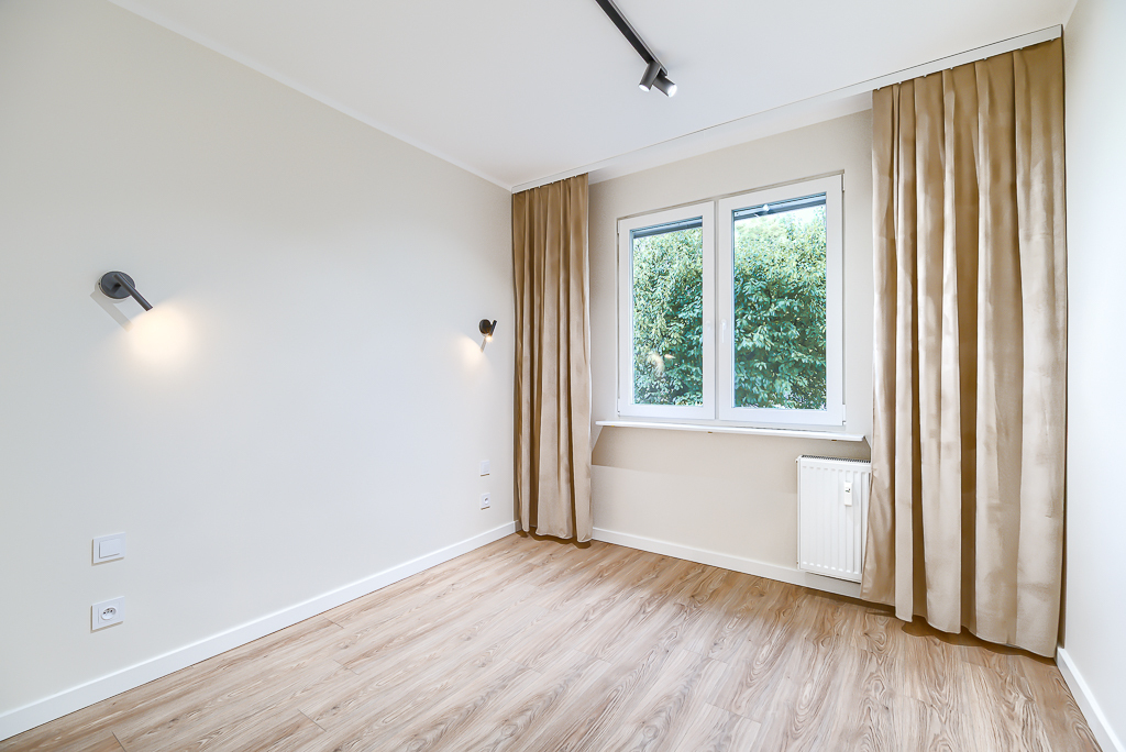 Przestronne, wykończone w wysokim standardzie mieszkanie, 3 sypialnie + salon z aneksem usytuowane na parterze niskiego bloku.