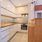 W kuchni blaty drewniane. Zabudowana lodówka, zmywarka, indukcja
