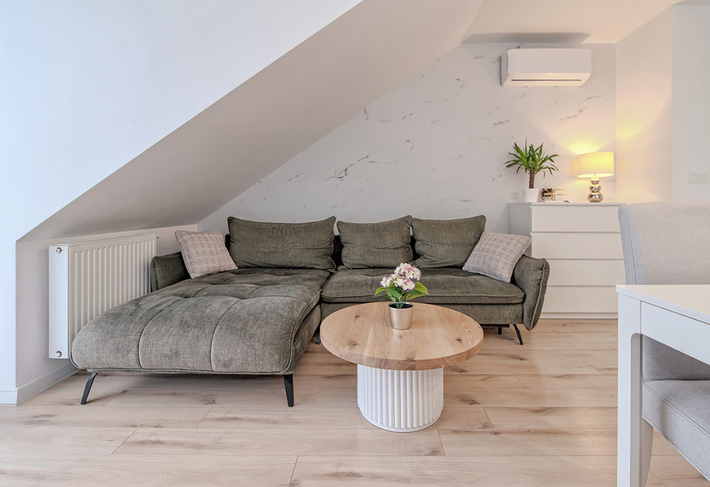 przestronnego salonu z aneksem kuchennym z wyjściem na balkon i klimatyzacją (23,5m2 + 3,7m2)