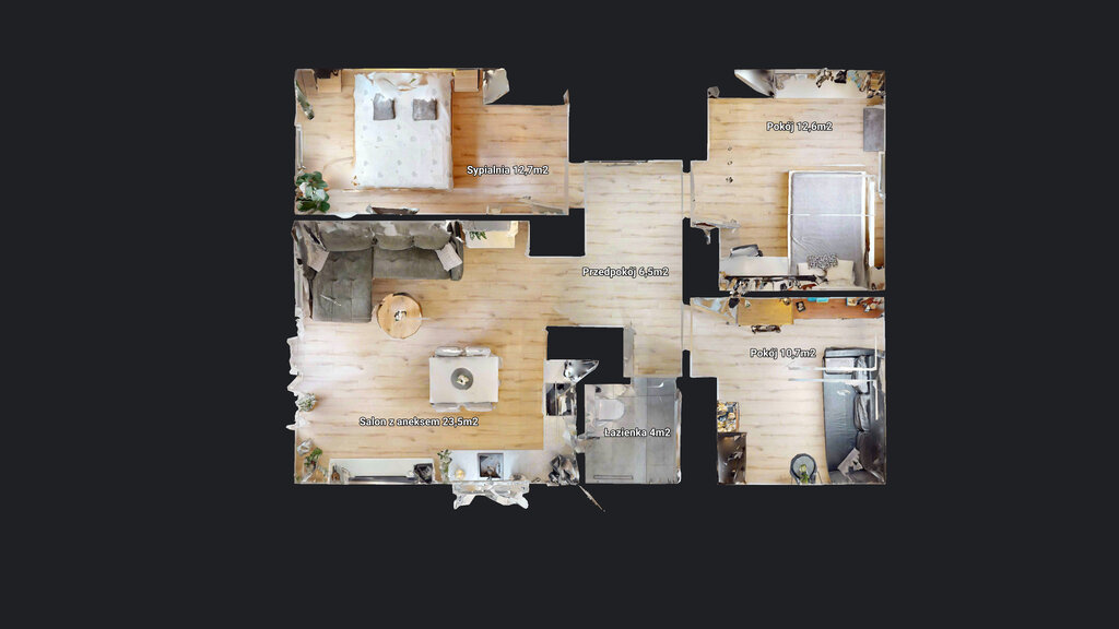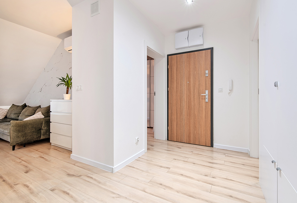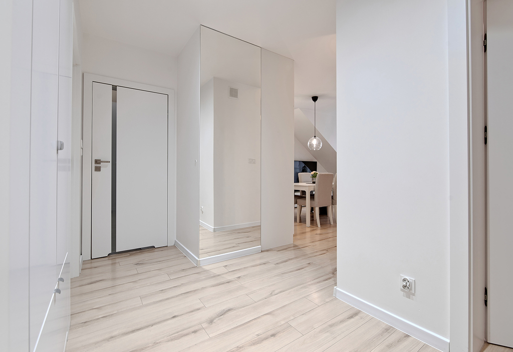 - wysokiej jakości panele podłogowe położone w technologii bez dylatacji (brak progów)