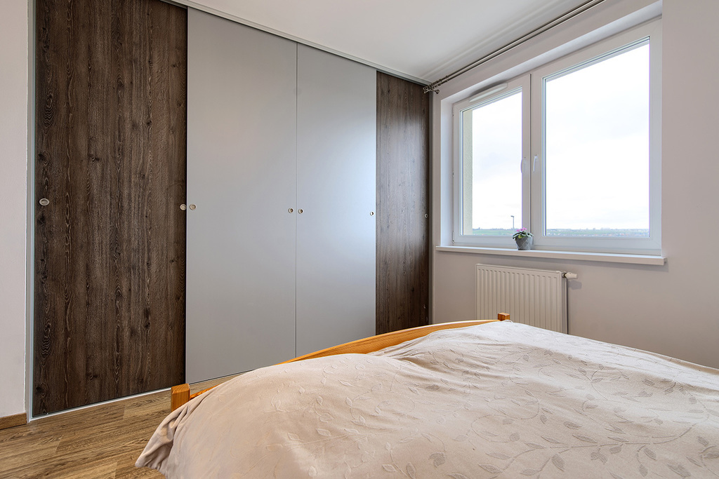 - w sypialni zrobiona na specjale zamówienie duża szafa garderobiana