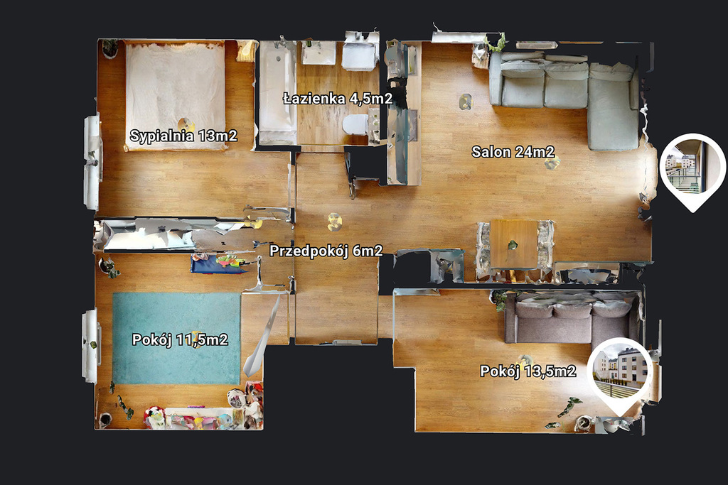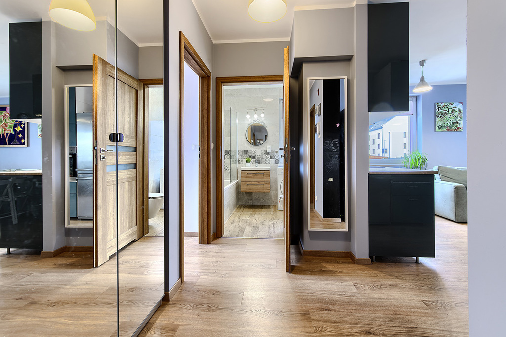- na podłogach panele o podwyższonym standardzie położone w technologi bez dylatacji (brak progów)