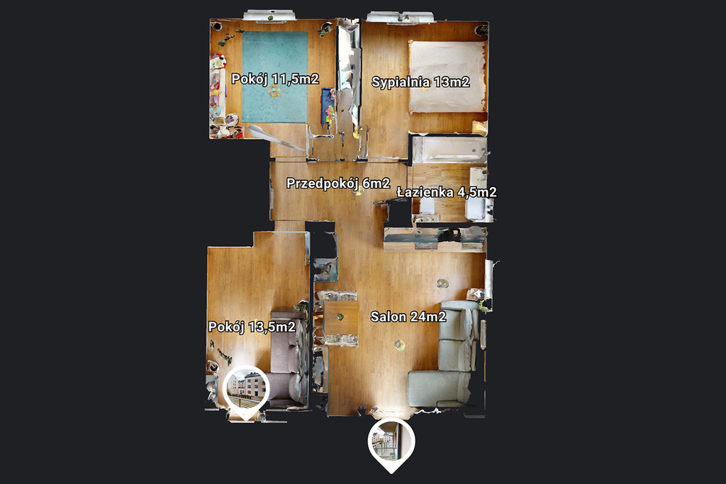 Przedstawione wizualizacje i grafiki mają charakter wyłącznie poglądowy i stanowią wyłącznie materiał pomocniczy, ułatwiający zorientowanie się w ogólnym wyglądzie oferowanej nieruchomości.