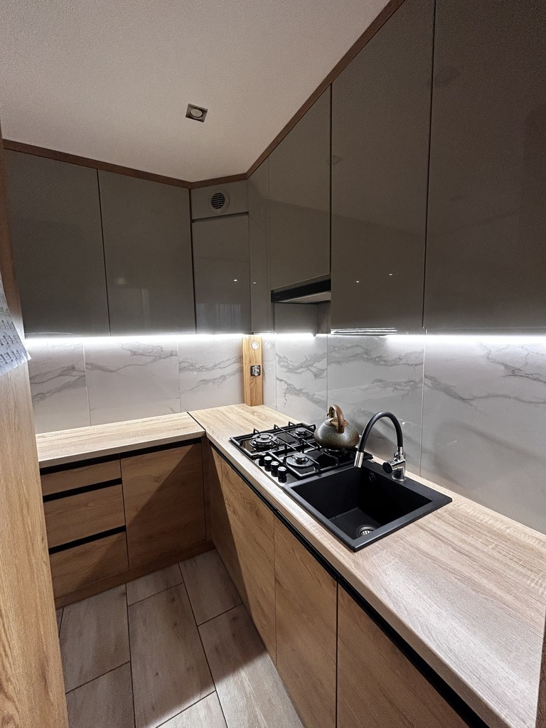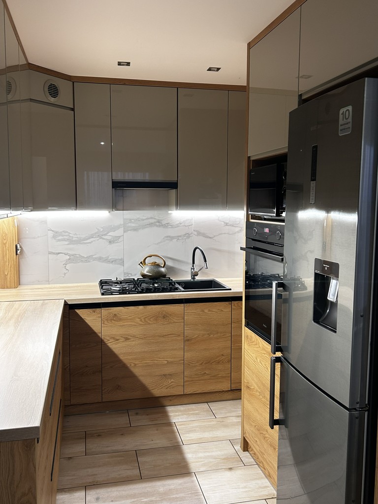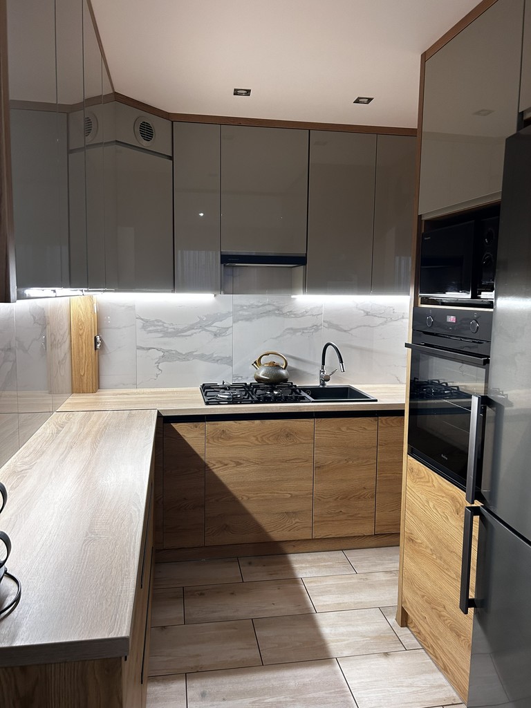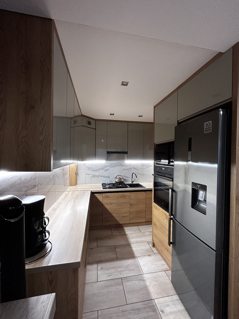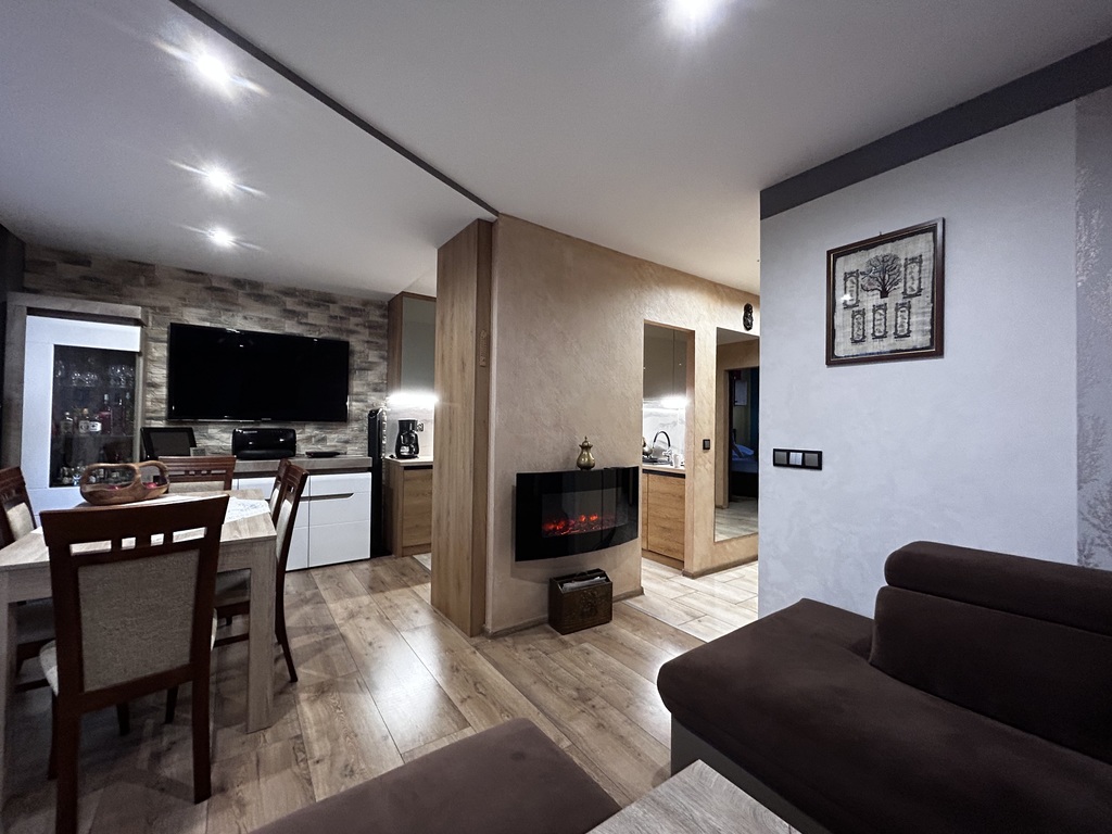 Salon z otwartą kuchnią- umeblowaną i wyposażoną