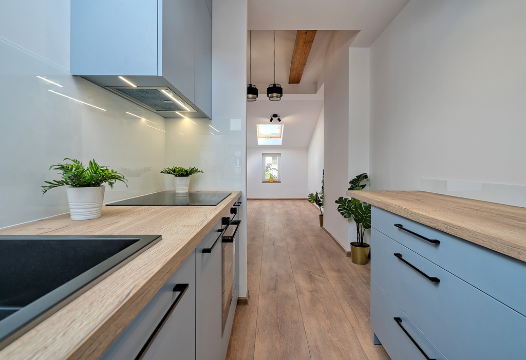- jasna, otwarta kuchnia połączona z częścią dzienną