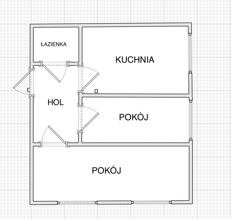 Mieszkanie przestronne z dużym potencjałem aranżacyjnym pod własne upodobania (możliwość połączenia kuchni z pokojem i wyodrębnienia dwóch sypialni).