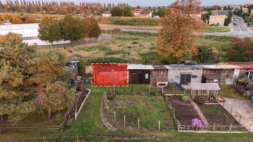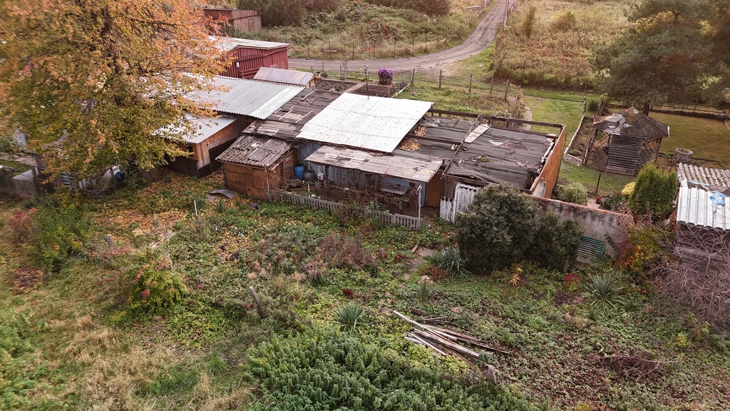 garaż wymagający remontu lub wymiany (np. na nowy garaż blaszany) oraz