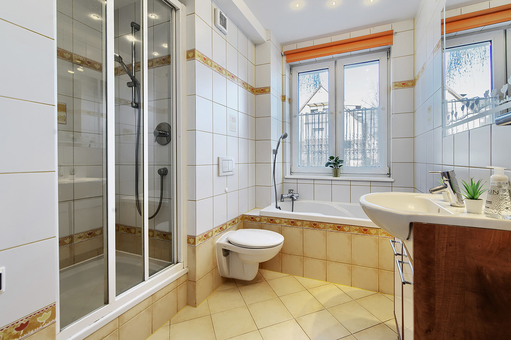 - łazienka wyposażona w wygodną wannę oraz osobny prysznic, armatura: hansgrohe, podłoga w łazience jest podgrzewana