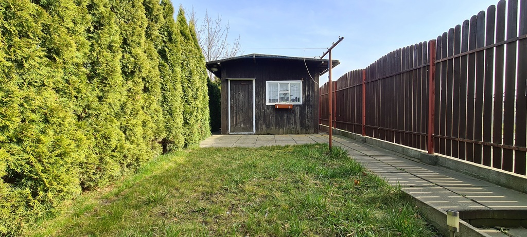 - ogródek z doprowadzoną wodą oraz prądem. W centralnej części ogródka znajduje się altana.
