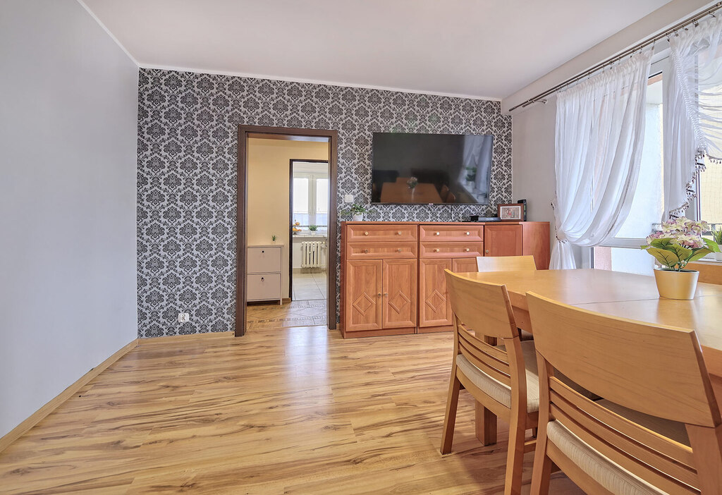 Mieszkanie w pełni wykończone- Podłogi: Panele oraz elegancki gres, zapewniające trwałość i estetykę.