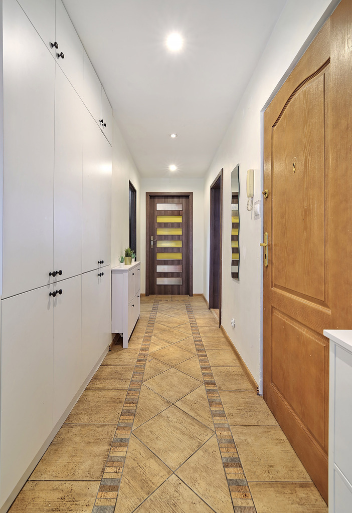 - Przedpokój: Przemyślane rozwiązania z funkcjonalnymi szafami w zabudowie.