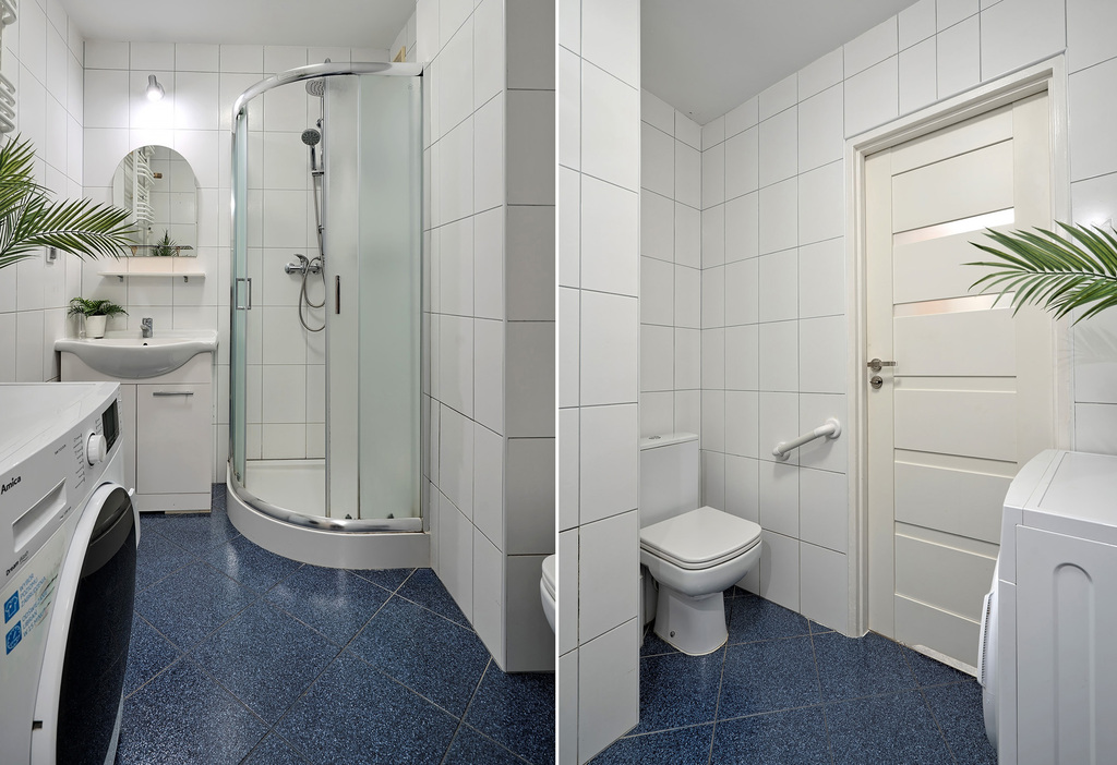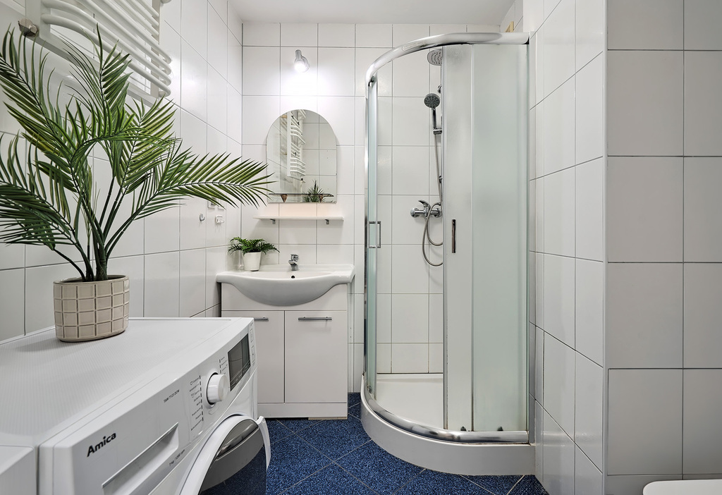 • Łazienka: wyposażona w prysznic oraz pralkę.