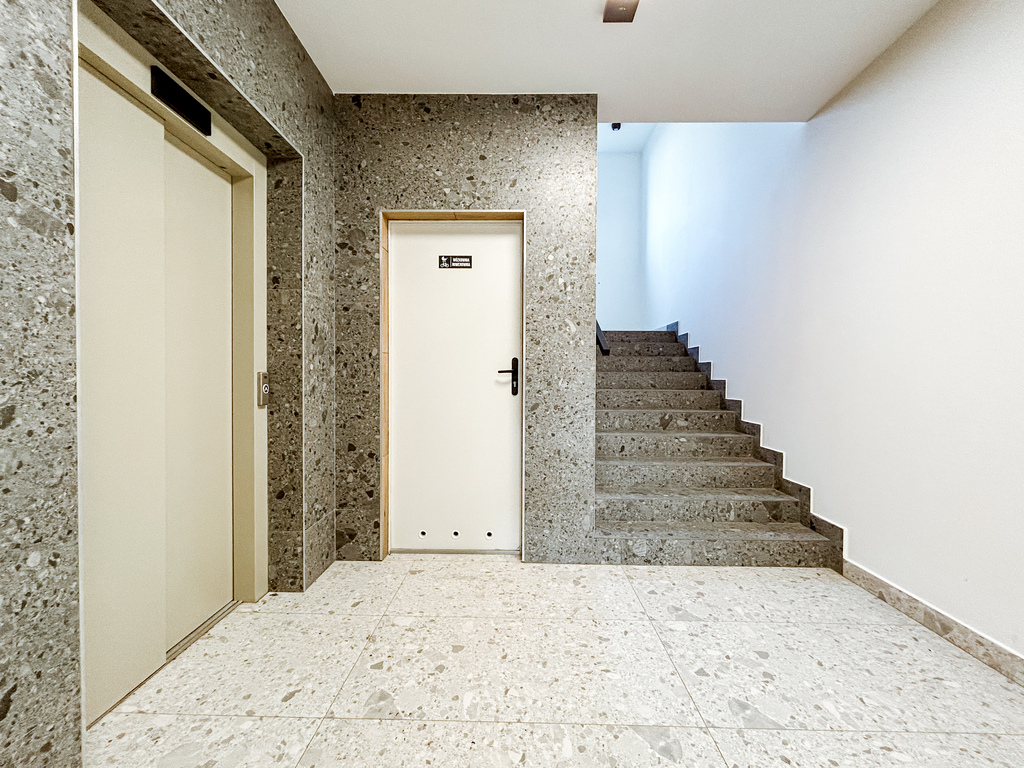 Mieszkanie należy do wspólnoty mieszkaniowej. W budynku dostępna jest wózkownia oraz siłownia dla mieszkańców. Do dyspozycji najemców są również miejsca parkingowe – zarówno w garażu, jak i na zewnątrz – w cenie najmu. Teren osiedla jest ogrodzony. Okna w mieszkaniu posiadają rolety antywłamaniowe.