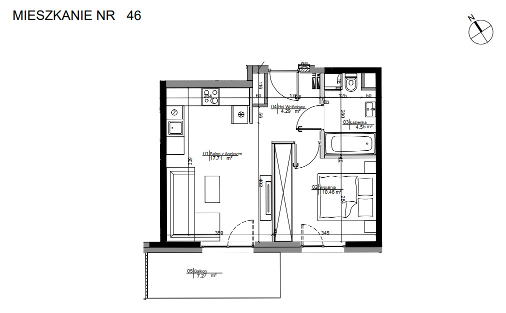 2 pokojowe mieszkanie z balkonem w nowym bloku oddanym do użytku.