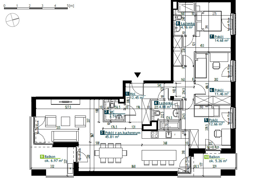 -  Salon z aneksem kuchennym45,81m2