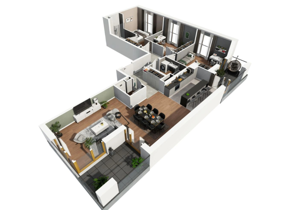 Przedstawione wizualizacje i grafiki mają charakter wyłącznie poglądowy i stanowią wyłącznie materiał pomocniczy, ułatwiający zorientowanie się w ogólnym wyglądzie oferowanej nieruchomości.
