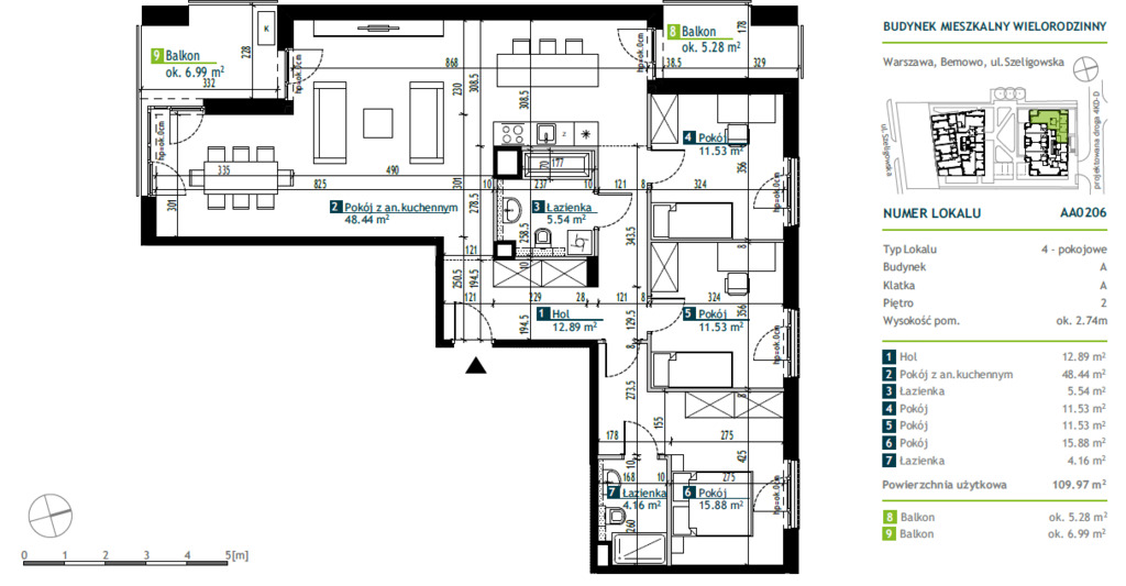 Inwestycja to kameralny budynek zlokalizowany na warszawskim Chrzanowie, który jest dynamicznie rozwijającą się częścią miasta. Nowa inwestycja znajduje się zaledwie 450 metrów od powstającej stacji metra Chrzanów, co pozwoli przyszłym mieszkańcom na wygodny dojazd do centrum Warszawy. Dodatkowo, szybki dostęp do trasy S8 umożliwia wyjazd z miasta w mniej niż 5 minut. W pobliżu, po drugiej stronie ulicy Szeligowskiej, planowane jest otwarcie dużego zespołu szkolno-przedszkolnego, który pomieści ponad tysiąc dzieci.