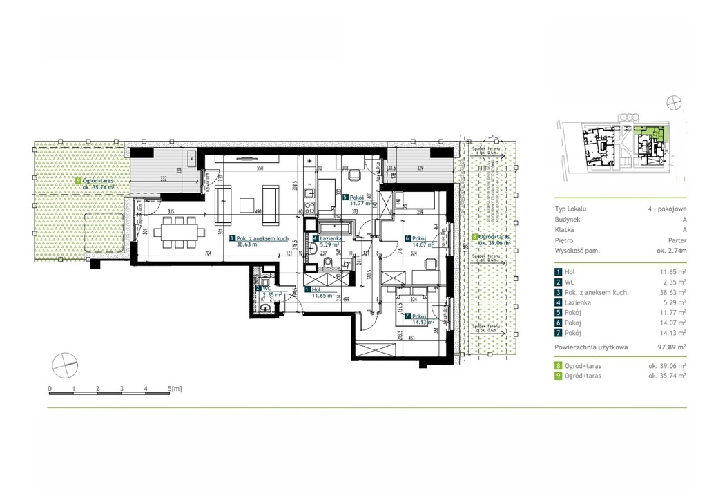 - Ogródek + taras   ok. 39,06 m2