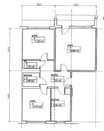 Rozkład mieszkania:- salon 19,96 m2