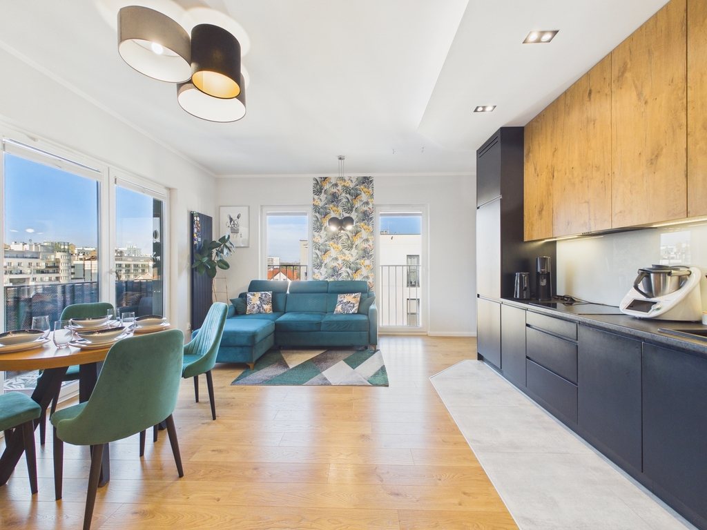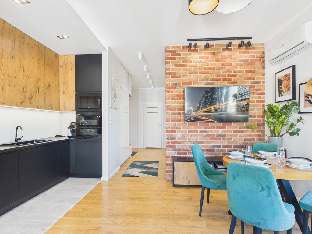 W cenie pełne wyposażenie RTV i AGD, w tym: telewizor, pralka, lodówka, płyta indukcyjna, okap, mikrofala oraz zmywarka – wszystko, czego potrzebujesz, by od razu poczuć się jak w domu!