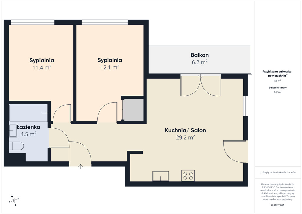 ·        Metraż: 58,78 m²