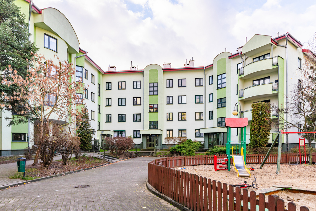 Mieszkanie znajduje się w budynku z 2001 roku. Elewacja budynku w dobrym stanie. Klatki schodowe odświeżone i odmalowane. Osiedle jest bezpieczne i ogrodzone, wewnątrz duży plac zabaw dla dzieci.
