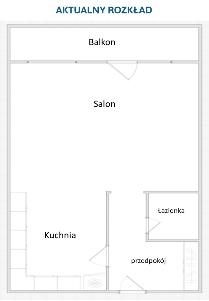 Obecnie mieszkanie posiada duży salon z wyjściem na balkon. Mieszkanie jest ciche, okna skierowane są na stronę południowo-wschodnią. Kuchnia otwarta na salon z dodatkowym wejściem z przedpokoju. Meble w kuchni w bardzo dobrym stanie, jest nowy piekarnik, płyta indukcyjna, okap, lodówka. W łazience kabina prysznicowa. Przedpokój duży i ustawny z szafą.