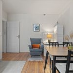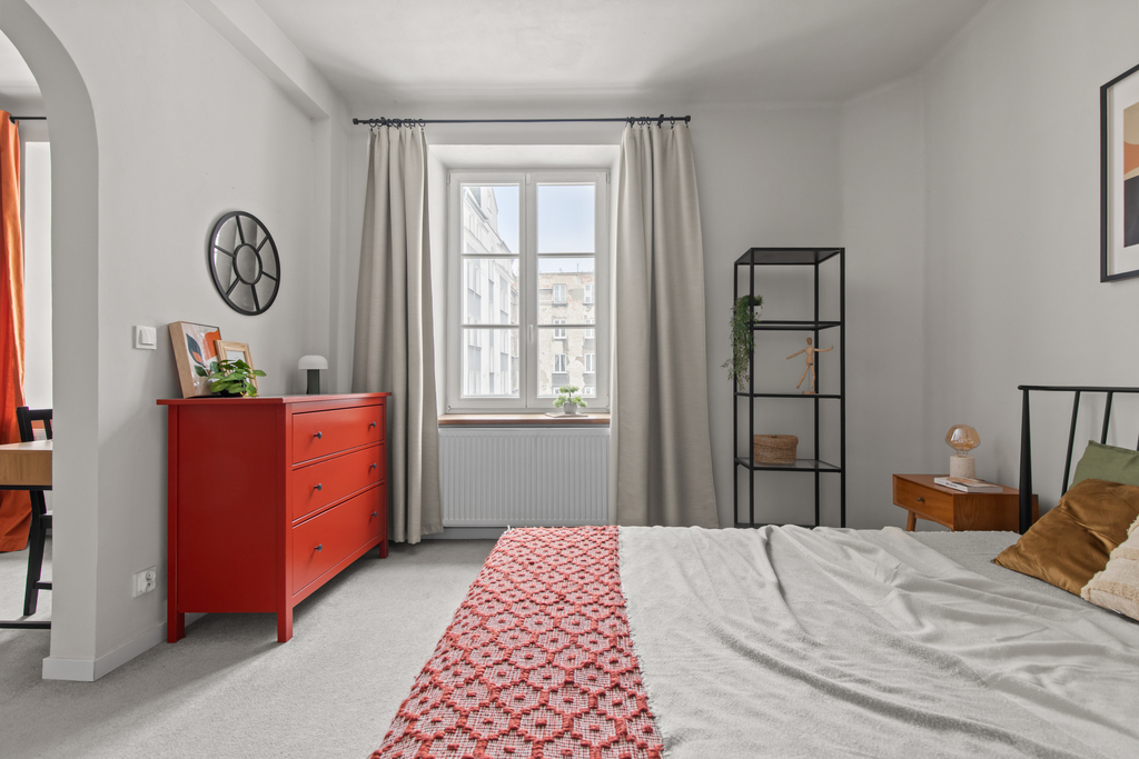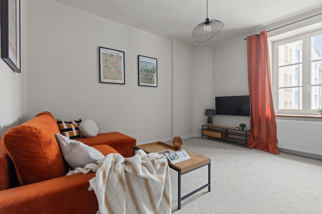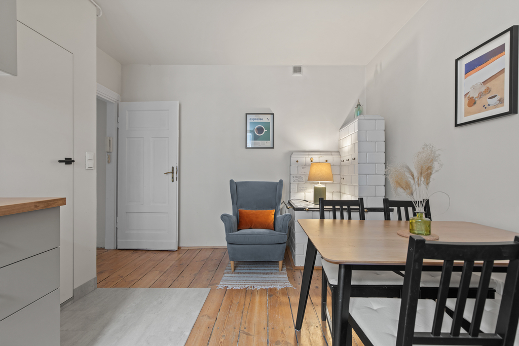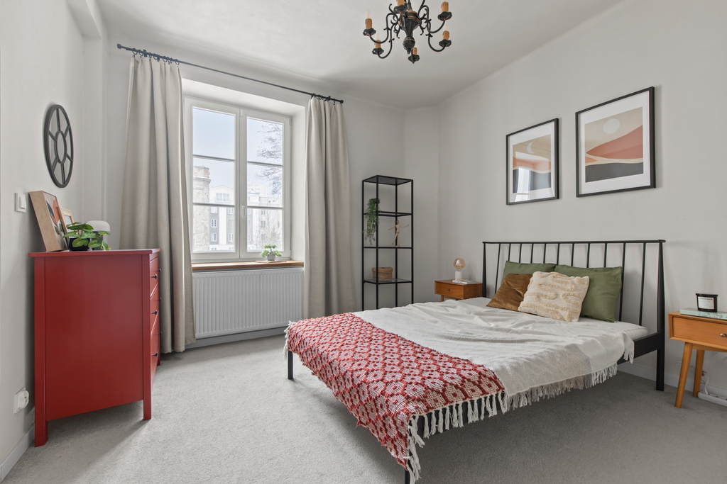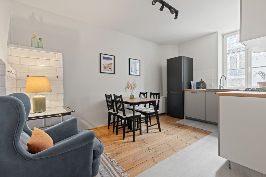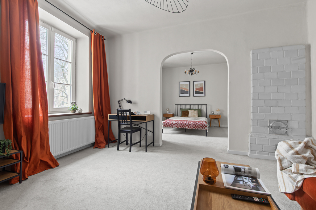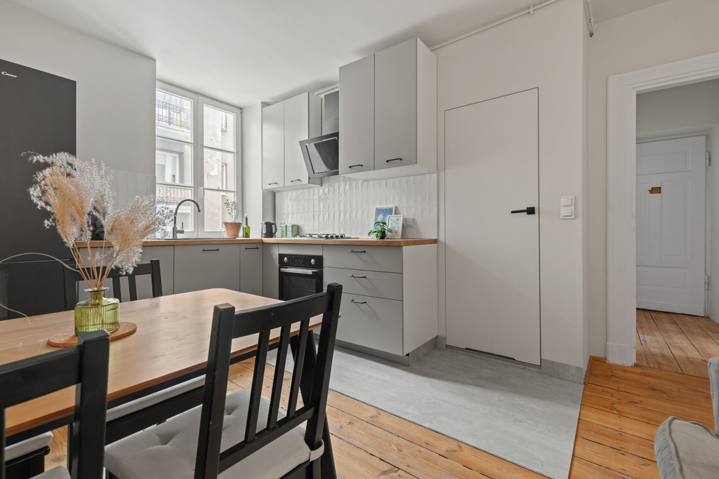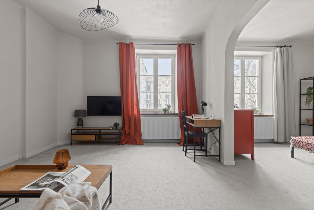 Mieszkanie jest jasne, ustawne i po remoncie. Nowoczesna aranżacja została połączona z elementami podkreślającymi klimat kamienicy.