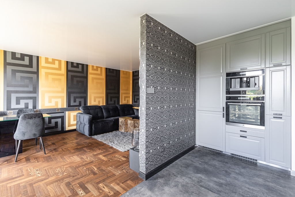 Mieszkanie zachwyca wykończeniem w bardzo wysokim standardzie, dzięki czemu każdy element wnętrza został starannie zaprojektowany, by zapewnić wyjątkowy komfort i estetykę.