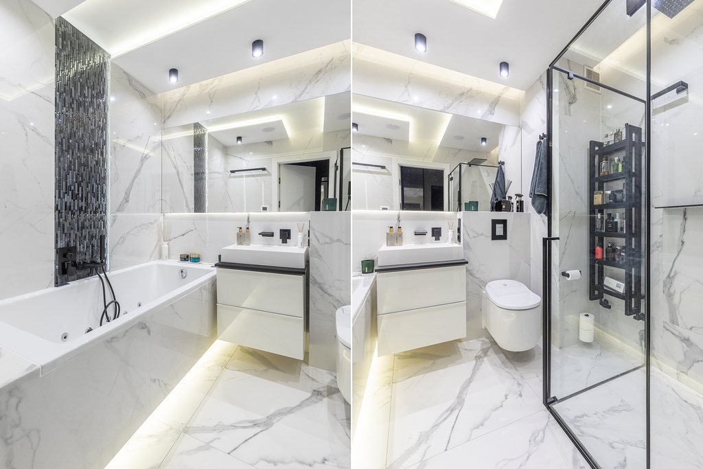 6. Na ścianie z wanna dekoracyjna szklana mozaika
