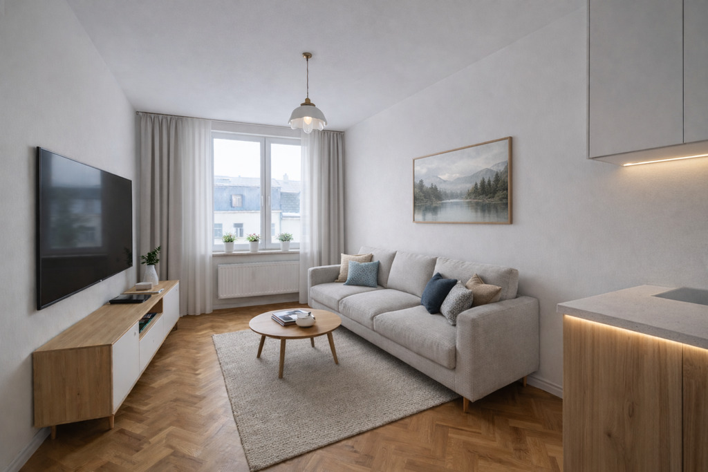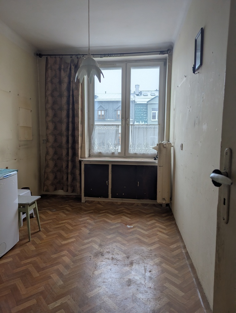 Mieszkanie jest do remontu, co stanowi świetną okazję do aranżacji wnętrza w pełni według własnych potrzeb i gustu. Lokal ma funkcjonalny układ typu M2 (pokój + kuchnia), jednak dzięki bardzo atrakcyjnemu rozkładowi daje realną możliwość przekształcenia na salon z aneksem kuchennym + wydzieloną sypialnię.
