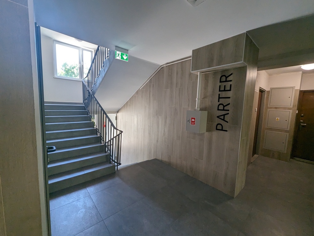 Mieszkanie znajduje się na 2. piętrze dziesięciopiętrowego bloku z 1965 roku. Budynek jest zadbany, wyposażony w windę oraz monitorowany.