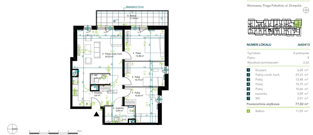 Na sprzedaż 4 pokojowe mieszkanie z dużym balkonem w nowopowstającej inwestycji przy ulicy Drwęckiej.