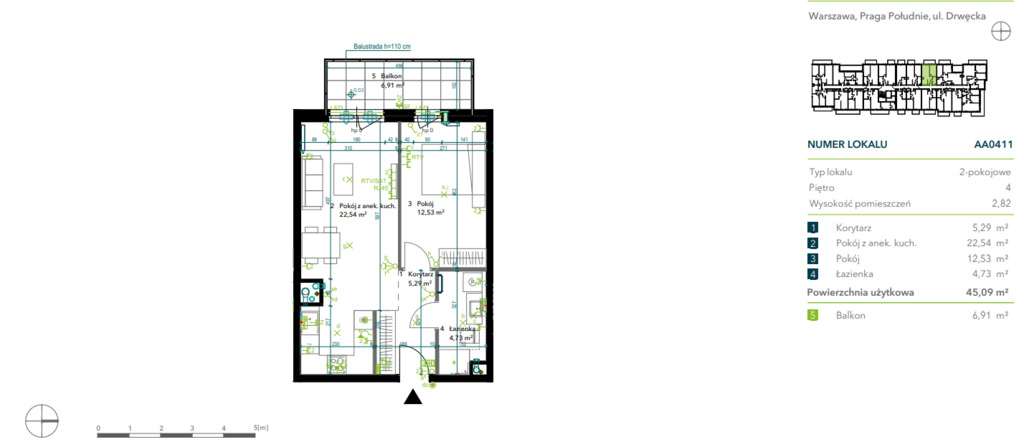 Praga Południe oferuje także sporo terenów zielonych – w sąsiedztwie znajdują się Park im. J. Polińskiego oraz Park Obwodu Praga Armii Krajowej, a do Parku Skaryszewskiego można dojechać rowerem w 12 minut