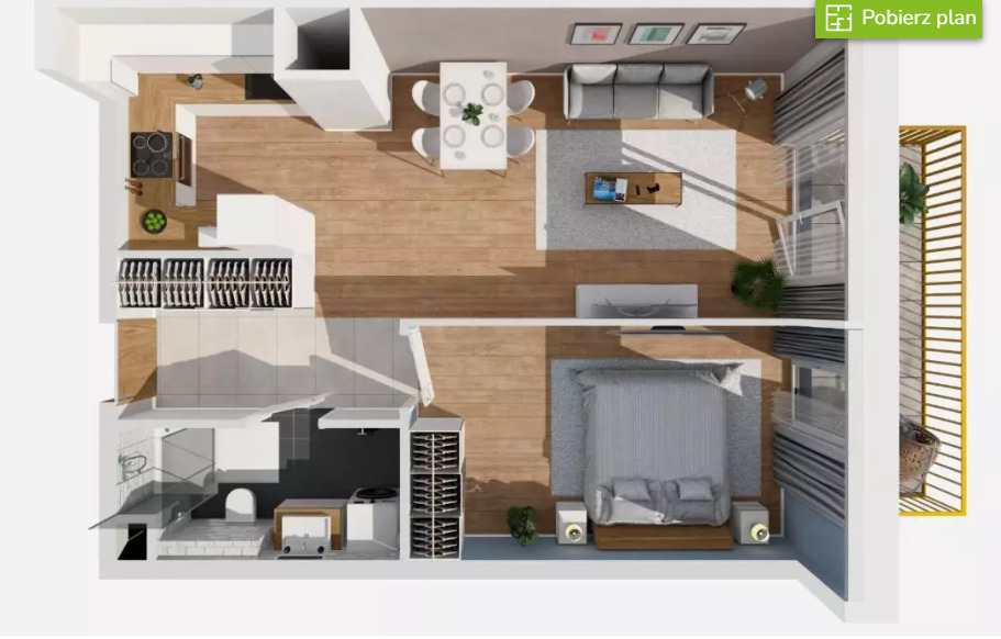 Przedstawione wizualizacje i grafiki mają charakter wyłącznie poglądowy i stanowią wyłącznie materiał pomocniczy, ułatwiający zorientowanie się w ogólnym wyglądzie oferowanej nieruchomości.