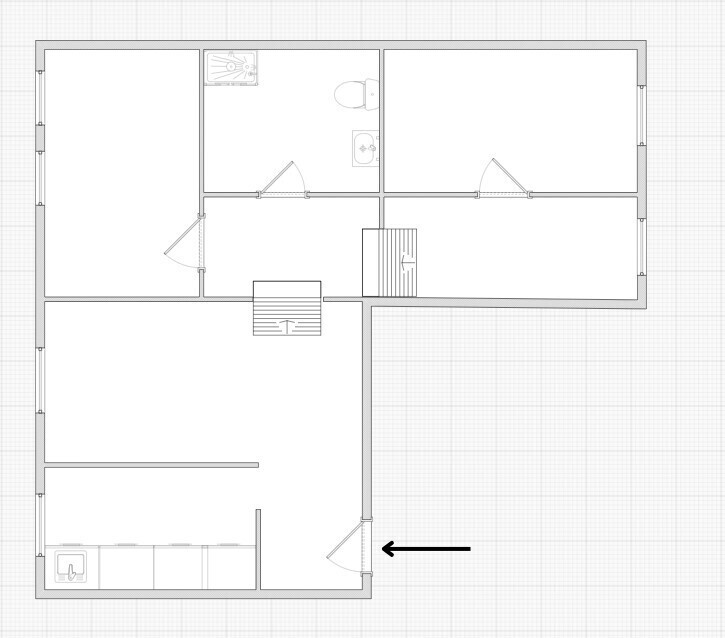 Mieszkanie usytuowane jest na dwóch poziomach, z niewielką różnicą wysokości między salonem a pozostałymi pomieszczeniami.