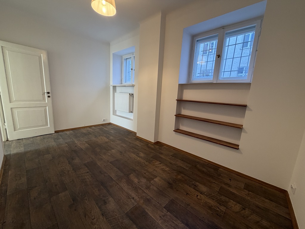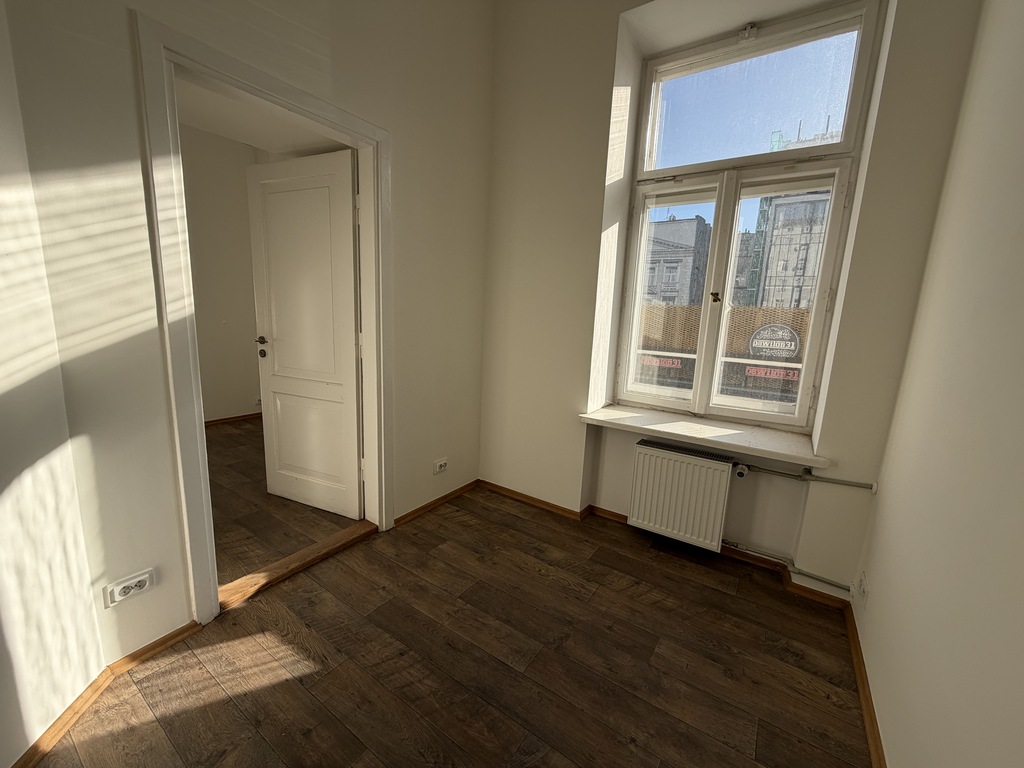 Mieszkanie jest nieumeblowane, z w pełni wyposażonym aneksem kuchennym (oddzielonym ścianką działową). Możliwość wynajmu na cele biurowe.