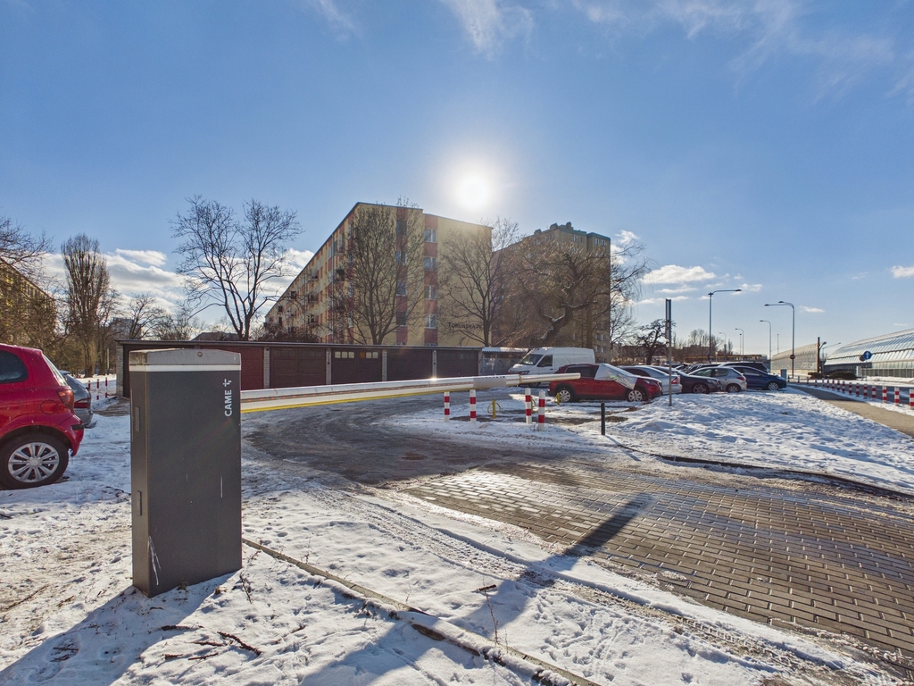 Mieszkańcy mają dostęp do zamkniętego terenu z wjazdem przez szlaban.