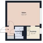 • ustawny pokój dzienny (ok. 19 m²) z dużymi możliwościami aranżacyjnymi,