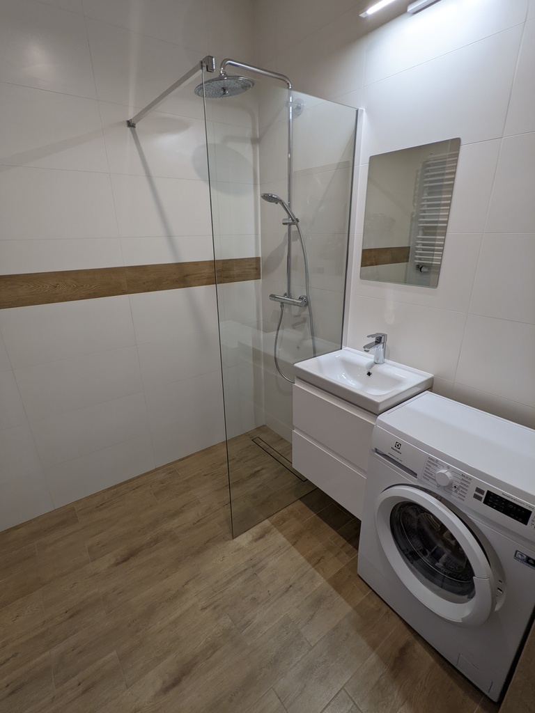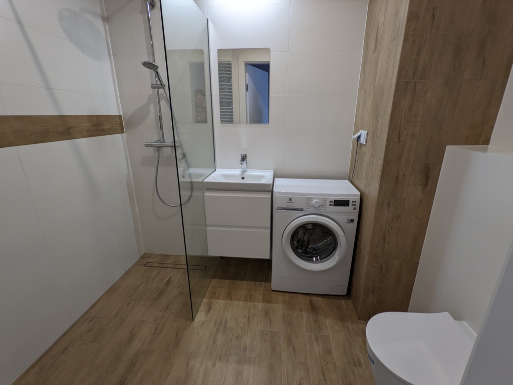 Łazienka (prysznic, pralka, umywalka, WC) - 4,18m2