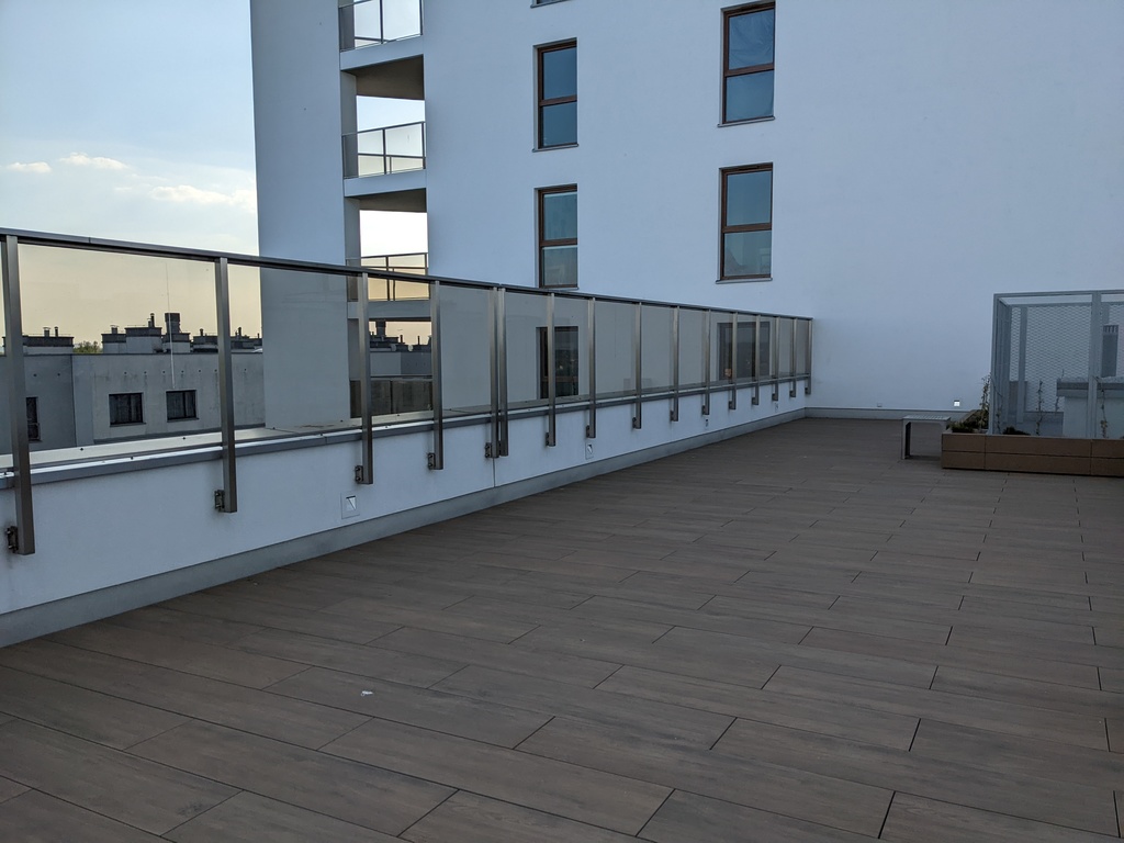 Na 8 piętrze na dachu budynku znajduje się taras widokowy dla mieszkańców.