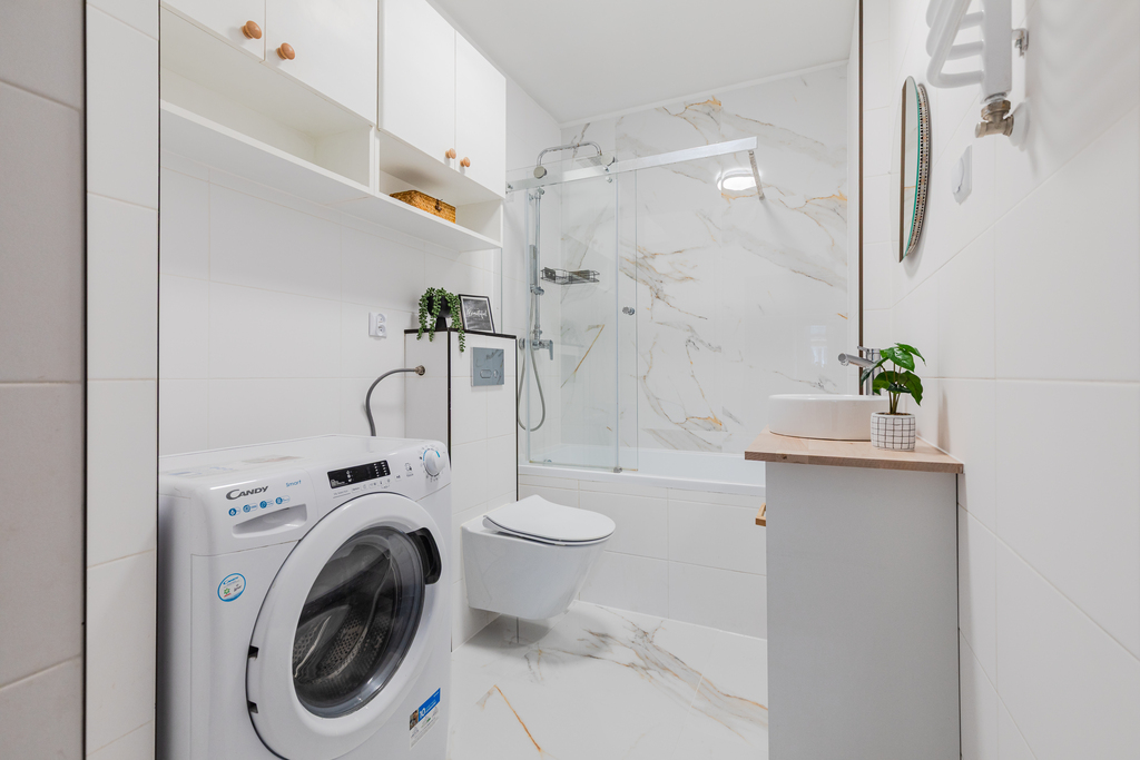 • Łazienka z wanną i parawanem prysznicowym