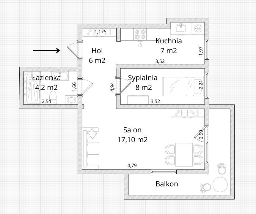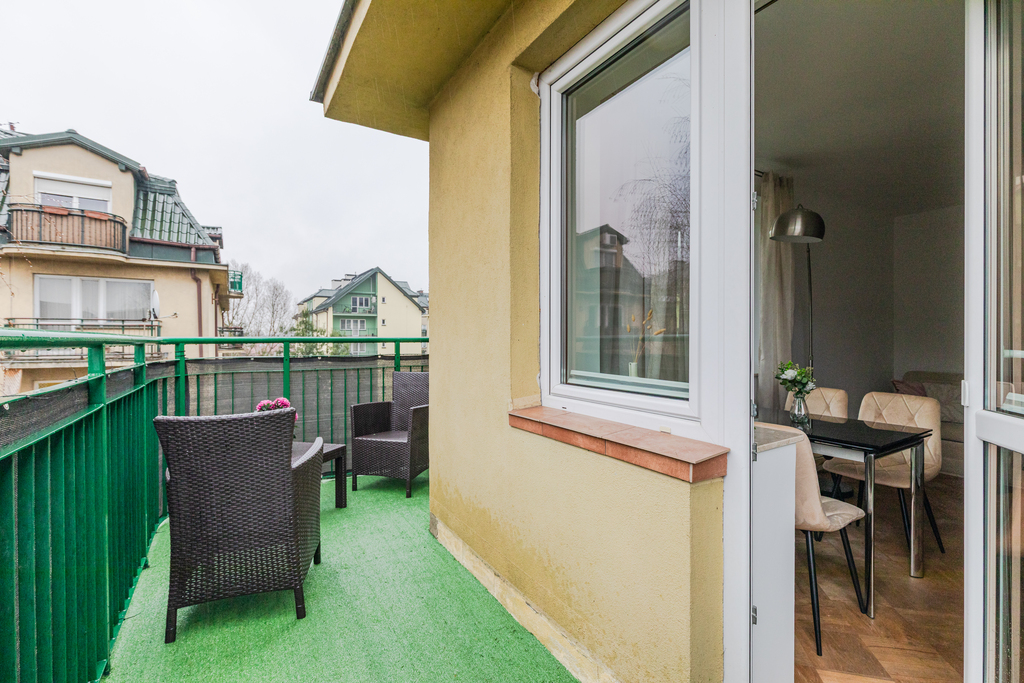 • Salon z wyjściem na przestronny balkon – idealne miejsce do wypoczynku