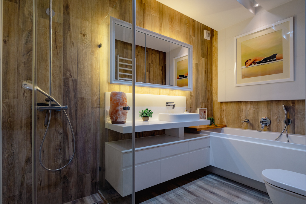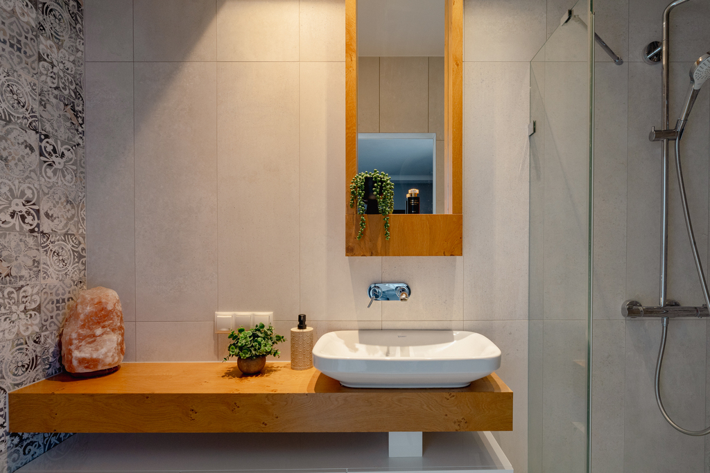 • Łazienka z wanną i prysznicem (6,53 m2) połączona z pralnią (2,5m2)